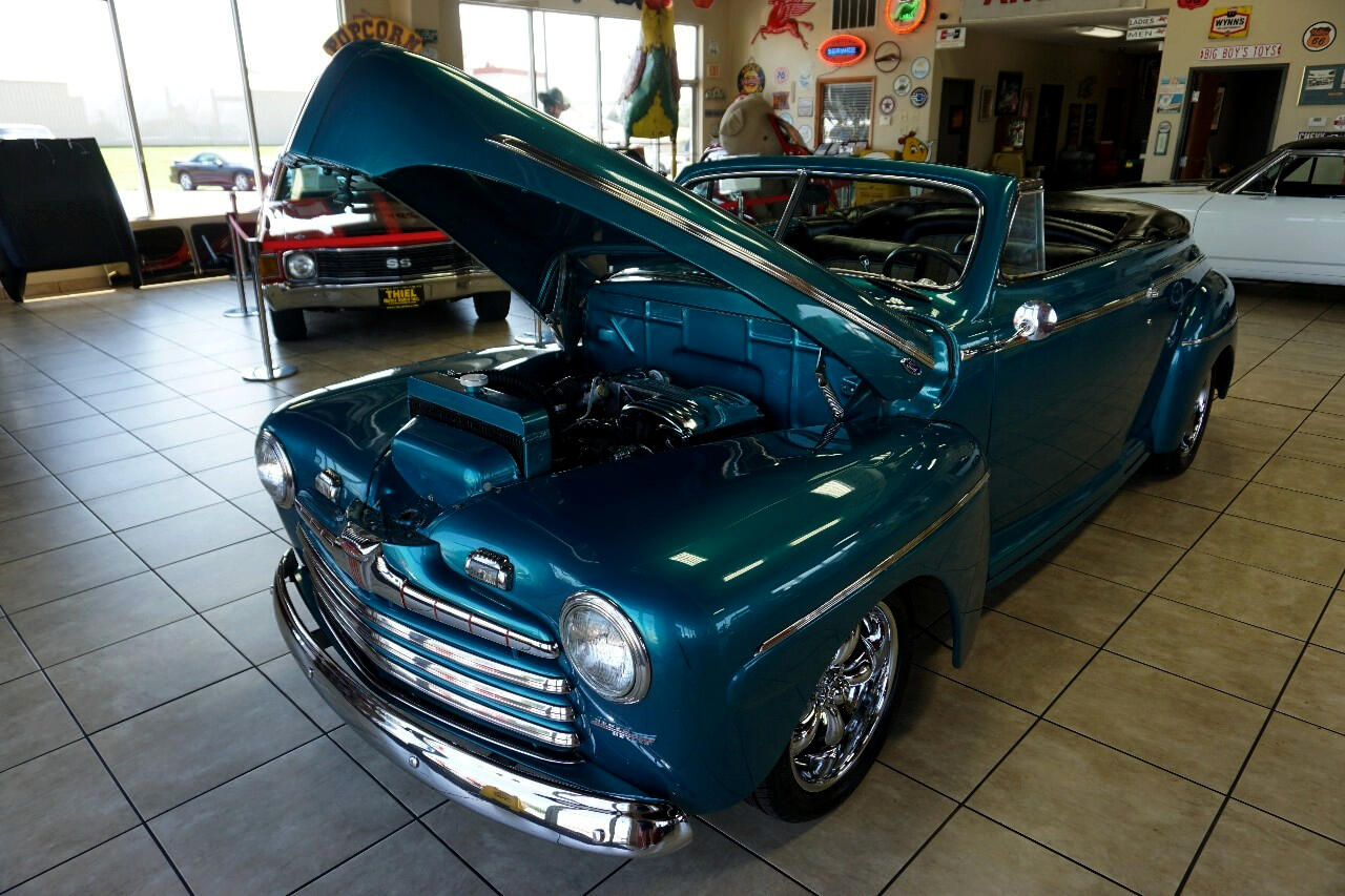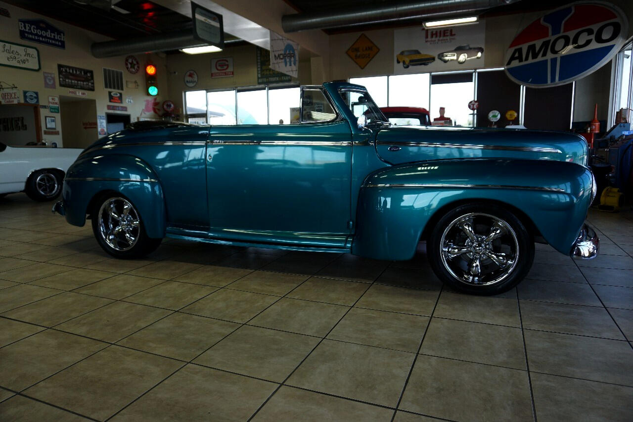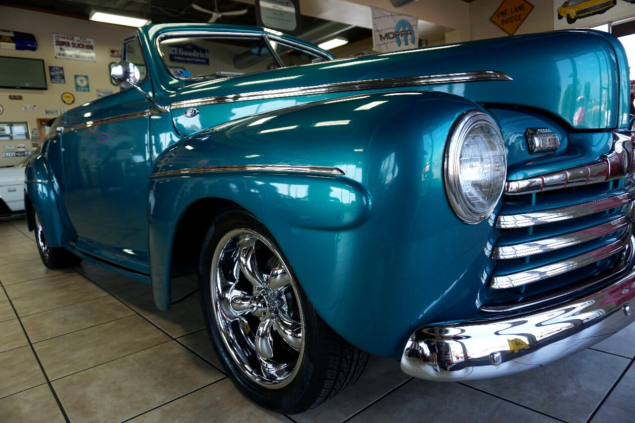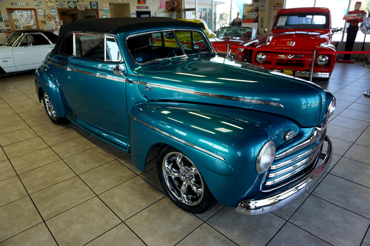 This isn’t your average post-war classic — this FRAME-OFF RESTORED 1946 Ford Super Deluxe Convertible has been upgraded with the right modern touches for performance, comfort, and reliability. Under the hood, a Fuel-Injected 5.0L 302 V8 pairs with a C6 Automatic Transmission, upgraded with a Mustang II Front-End and a 9" Ford Rear-End. Enjoy today’s drivability with Power Steering, Power Disc Brakes, Tilt Wheel, Modern Gauges, Upgraded Stereo, and even ICE-COLD AIR CONDITIONING — all while wrapped in timeless 1940s styling.