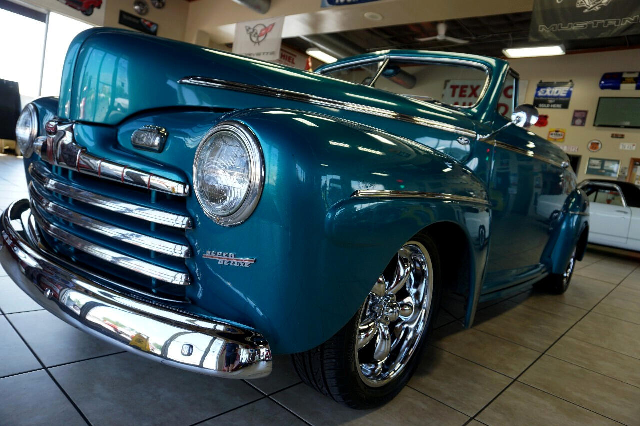 VERY NICE & EYE-Catching 1946 Ford Super-Deluxe Convertible. NOT a $200,000+ Barrett-Jackson Bank Breaker, nor a perfect show piece, but a good driver quality car that will turn heads at any classic car event, gas station, or sunny day cruise! Starts Easy, Idles Smooth, Runs Strong (See Video!). As with any vehicle - expect imperfections such as; rock-chips, scratches, dings, dents, etc. to be associated with the vehicle's age, mileage, and previous use. Please call or email with any specific condition questions. 800-605-2252.