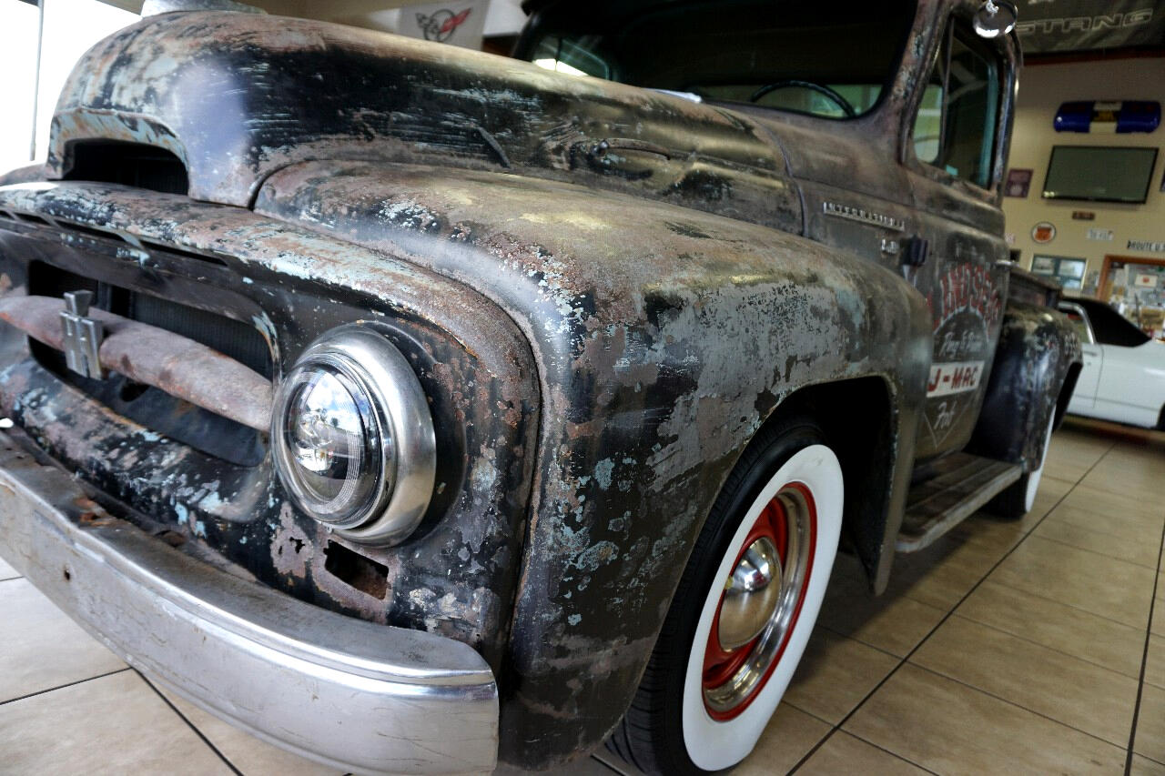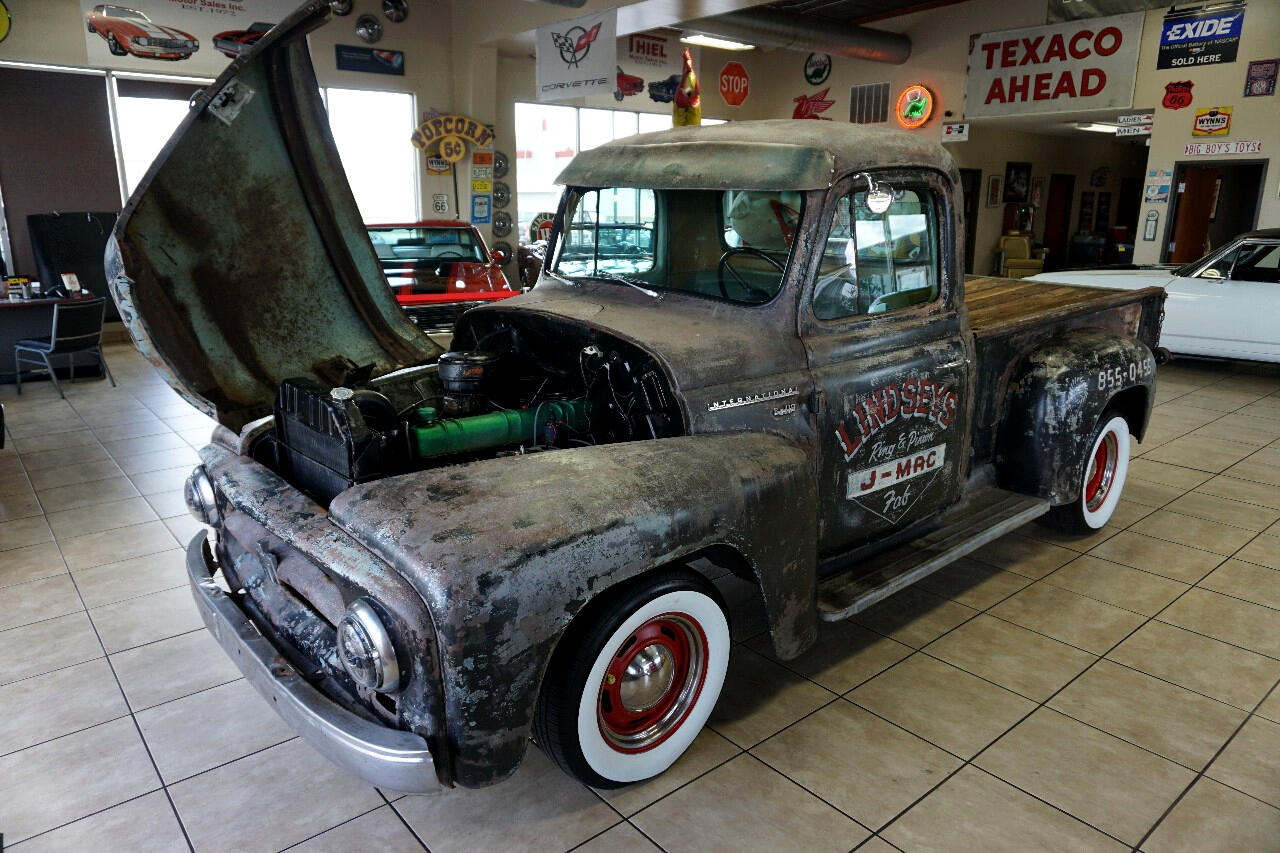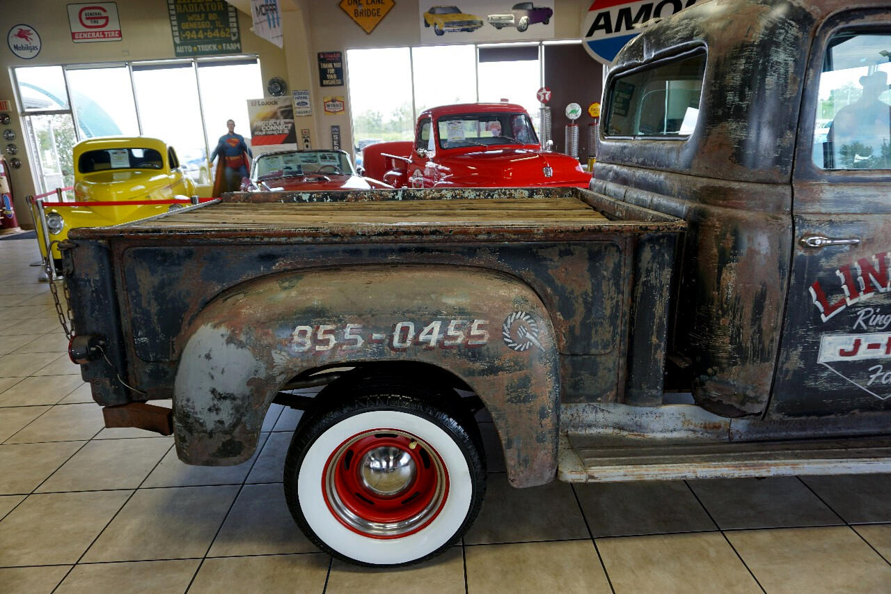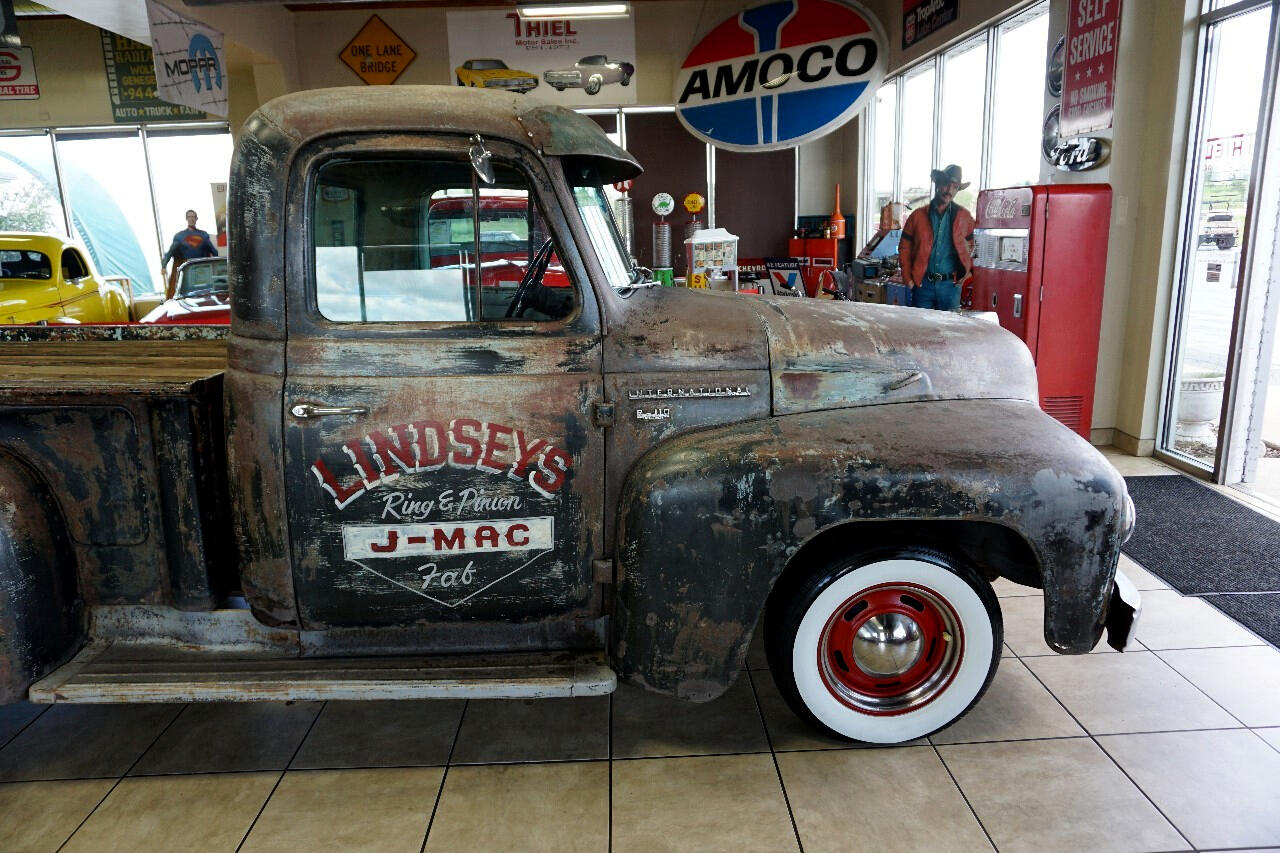 JUST IN from Tennessee! Check out this 1955 International Truck — a super cool, 1-off build loaded with character and tons of original patina! Powered by its In-Line 6-Cylinder Engine paired with a 3-Speed Transmission, this classic rolls on Red Rally Wheels with Fat White Tires for that perfect vintage vibe.
