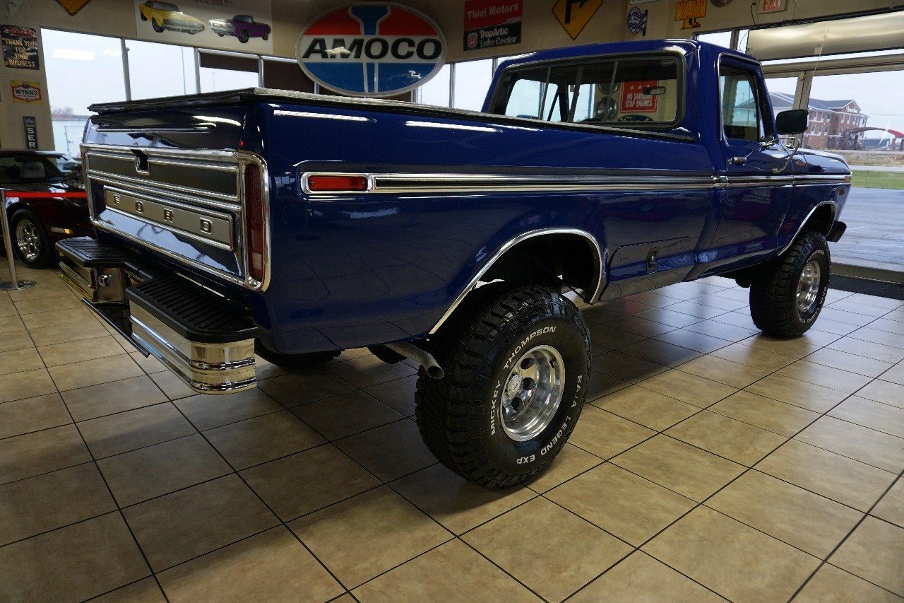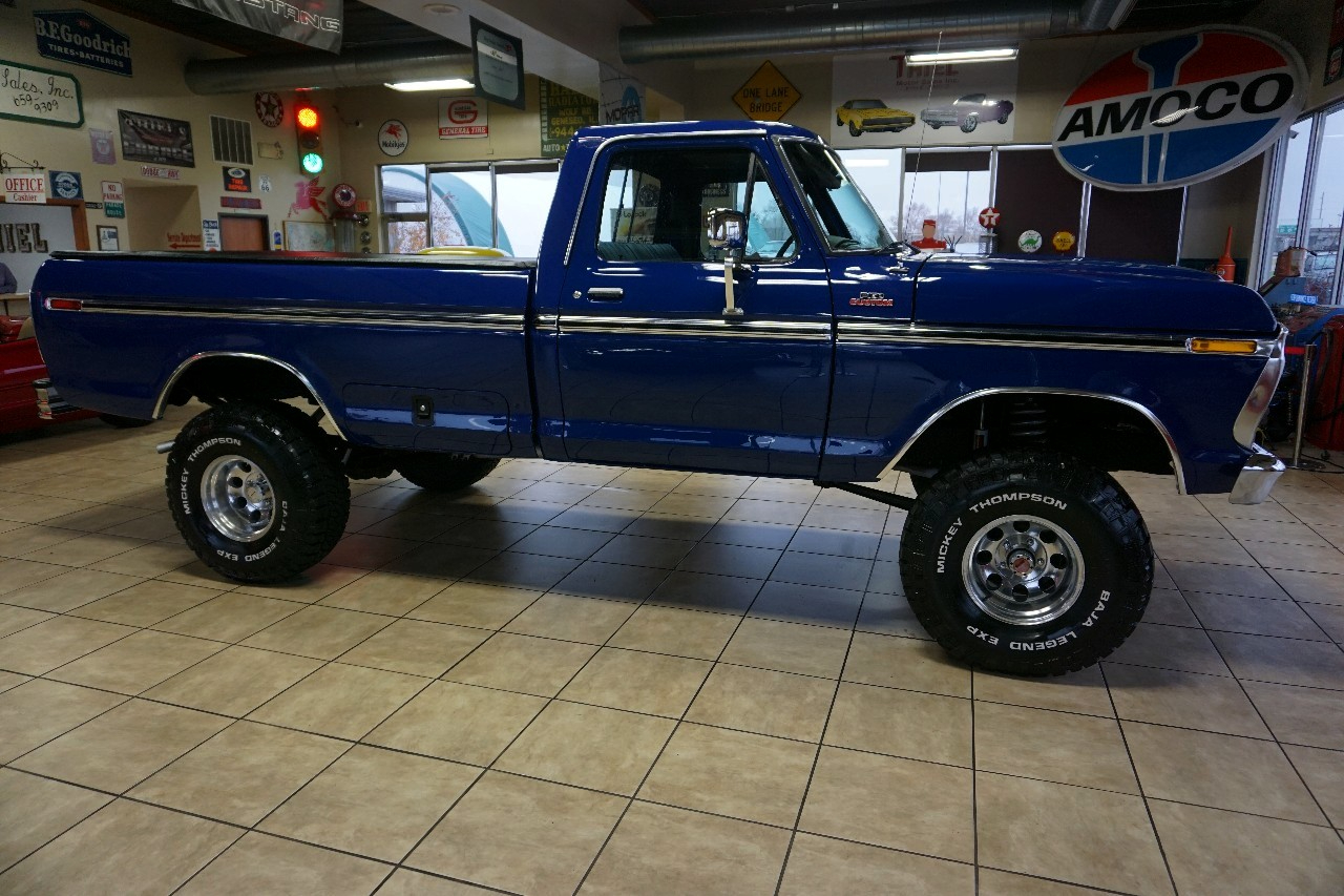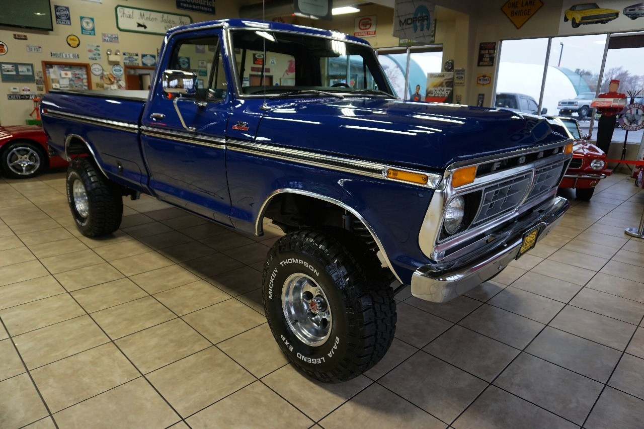 This is a very nicely restored 1977 Ford F-150 4x4 finished in Dark Blue Metallic and equipped with a 4-Inch Rough Country Lift, BRAND NEW 35-inch Mickey Thompson tires, and a strong 400ci V8 with automatic transmission and 4-WHEEL-DRIVE. Priced at JUST $37,997, it comes in thousands below NADA Book Value and recent market comps. If you’ve been wanting a classic “Little Big Foot”-style truck, this is a great opportunity—both as a fun driver and as a smart blue-chip investment in the rapidly appreciating classic truck market.