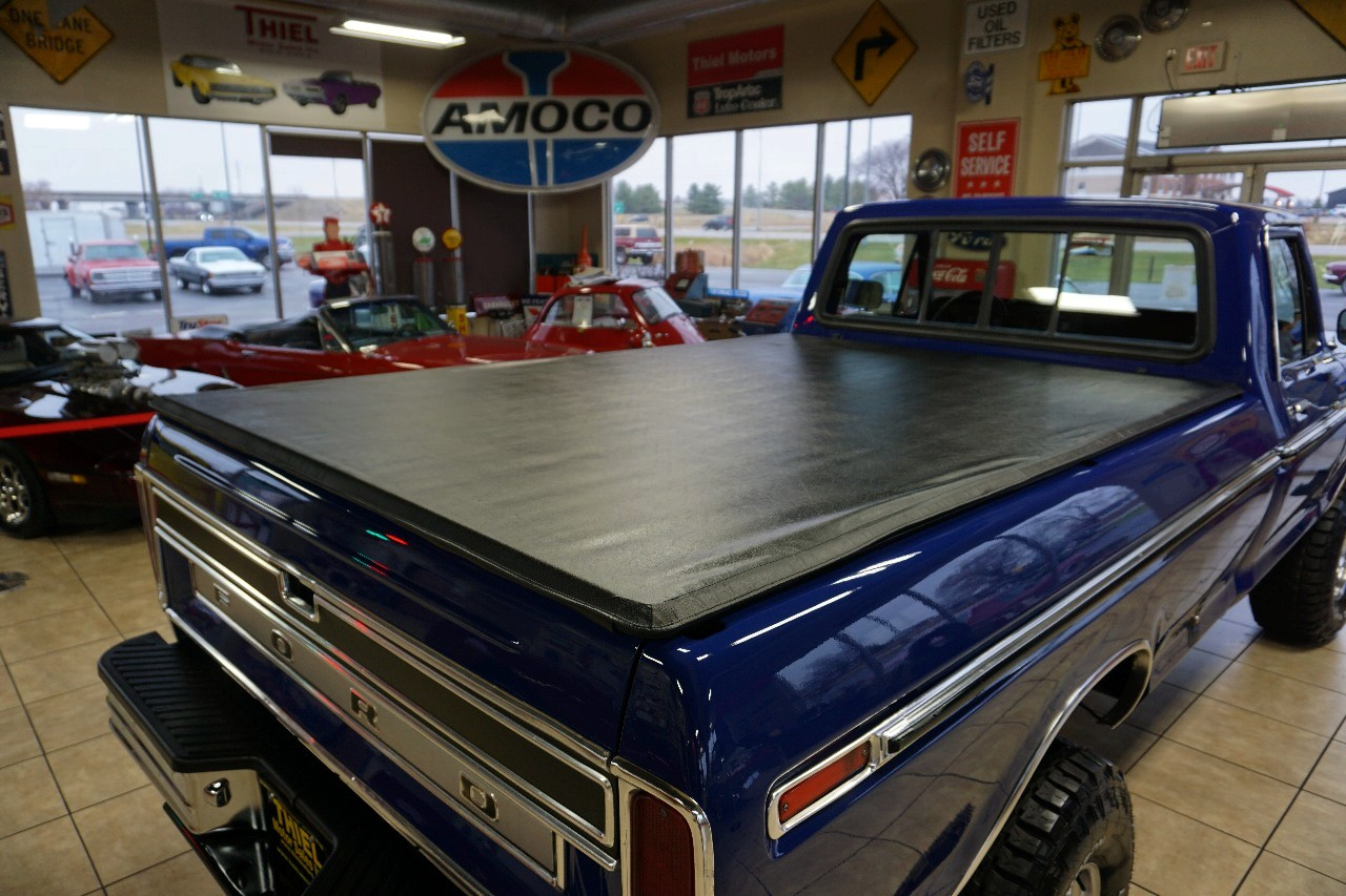 Here’s one you DON’T see every day — a VERY NICELY RESTORED 1977 Ford F-150 4X4 that checks every classic-truck box! Finished in Dark Blue Metallic and sitting on a 4-Inch Rough Country Lift, Brand-New 35-Inch Mickey Thompson Tires, and that unmistakable vintage stance. Powered by Ford’s 400ci V8, Automatic Transmission, and is a highly sought after 4-WHEEL-DRIVE!
