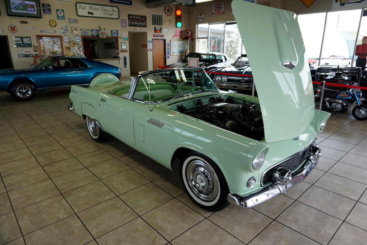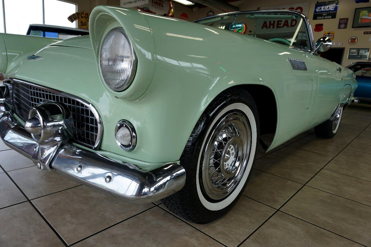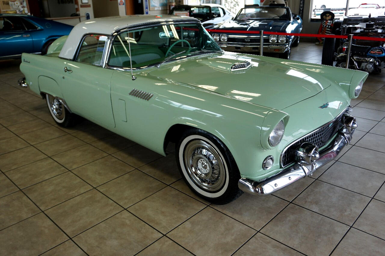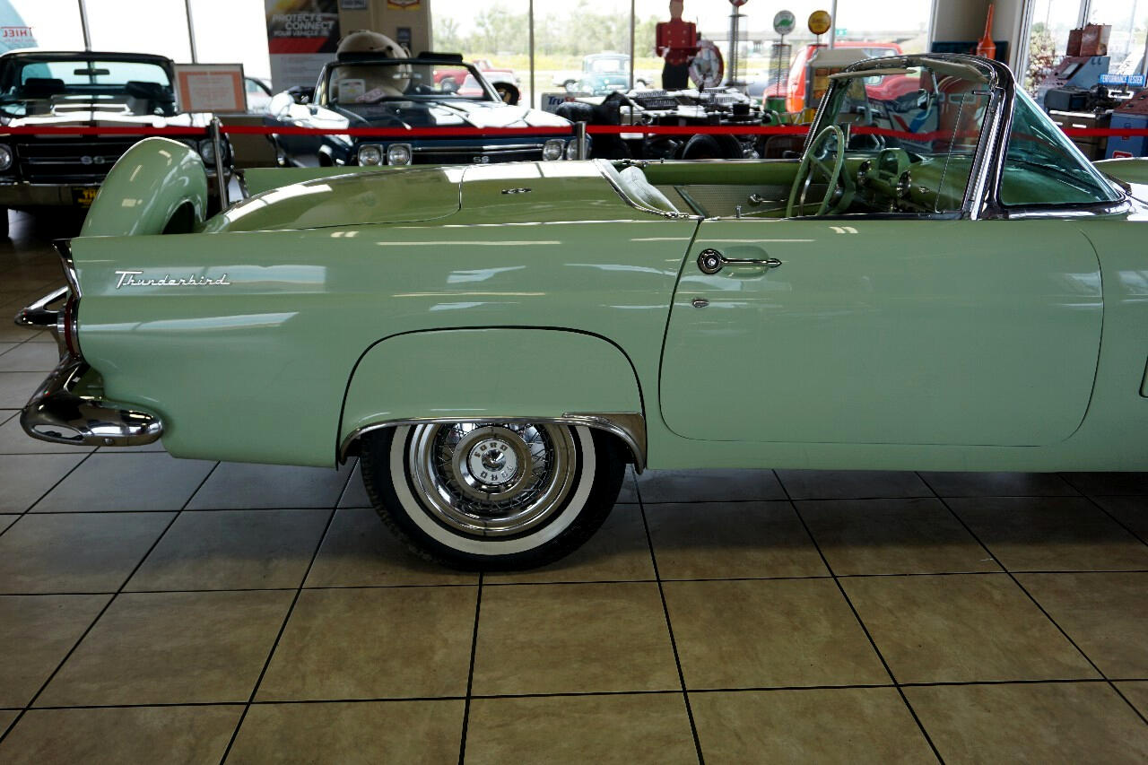 Check out this rolling piece of art — a stunning 1956 Ford Thunderbird, finished in eye-catching Sage Green with a crisp White Removable Hardtop.