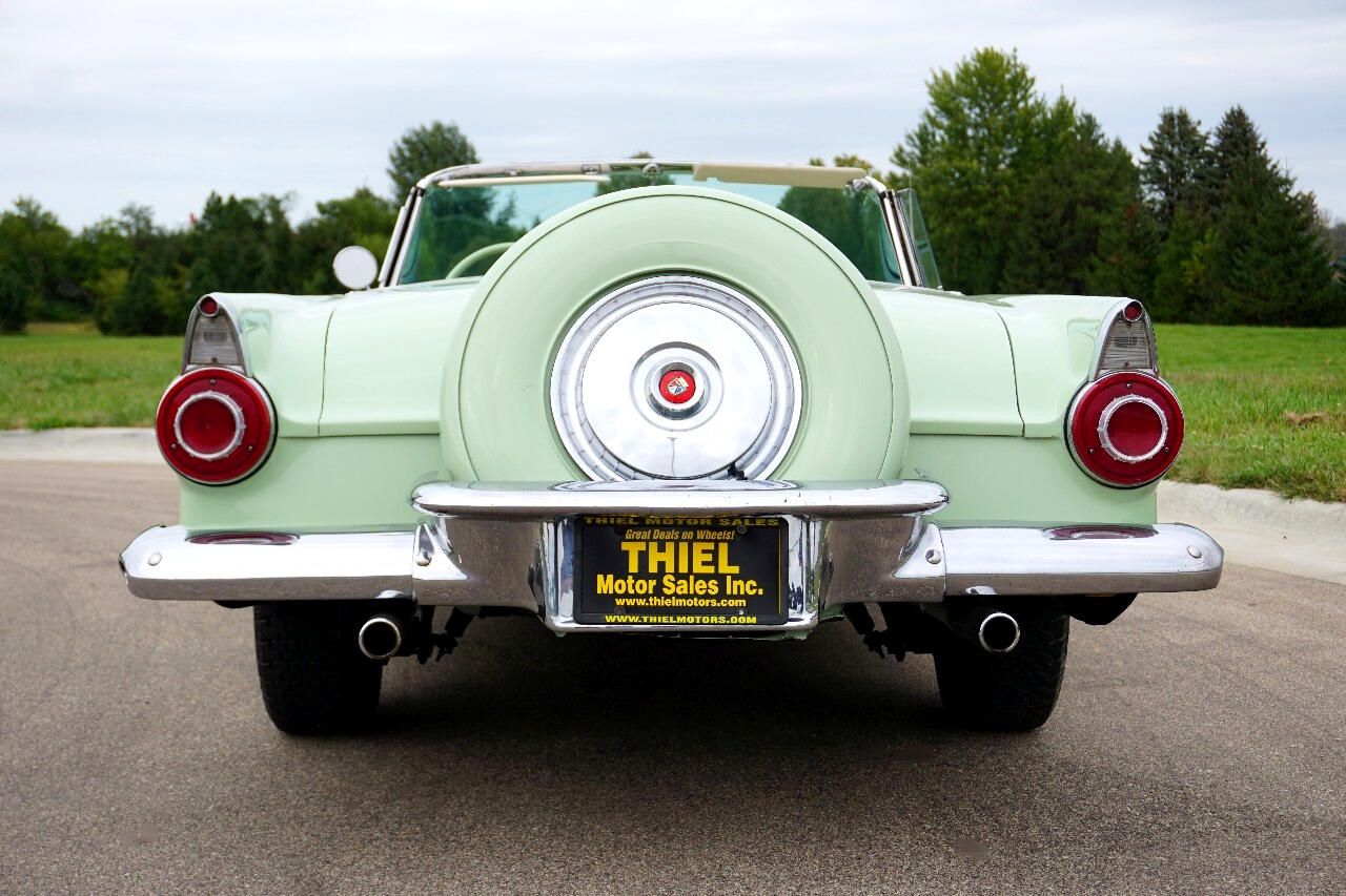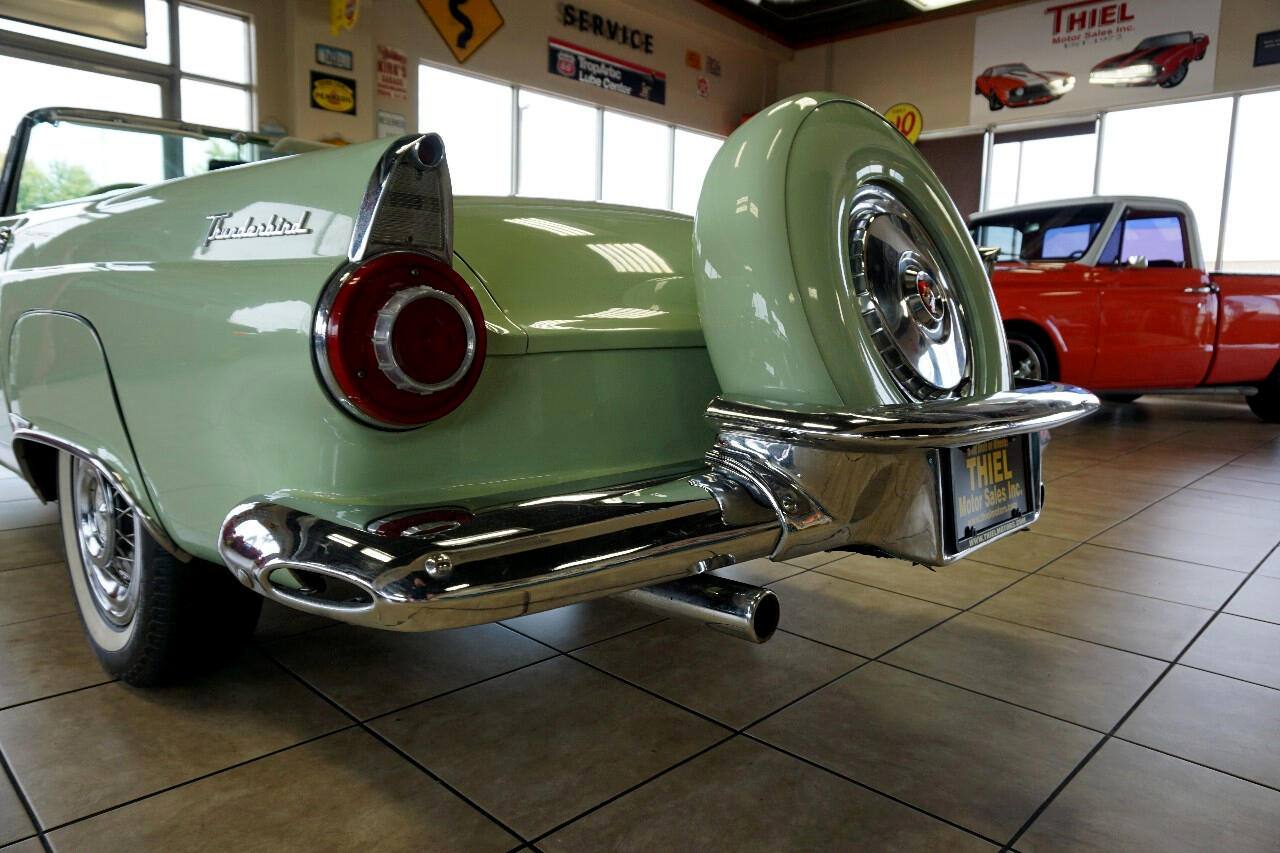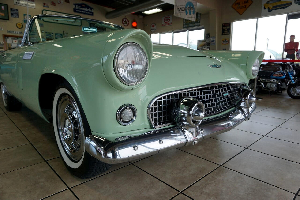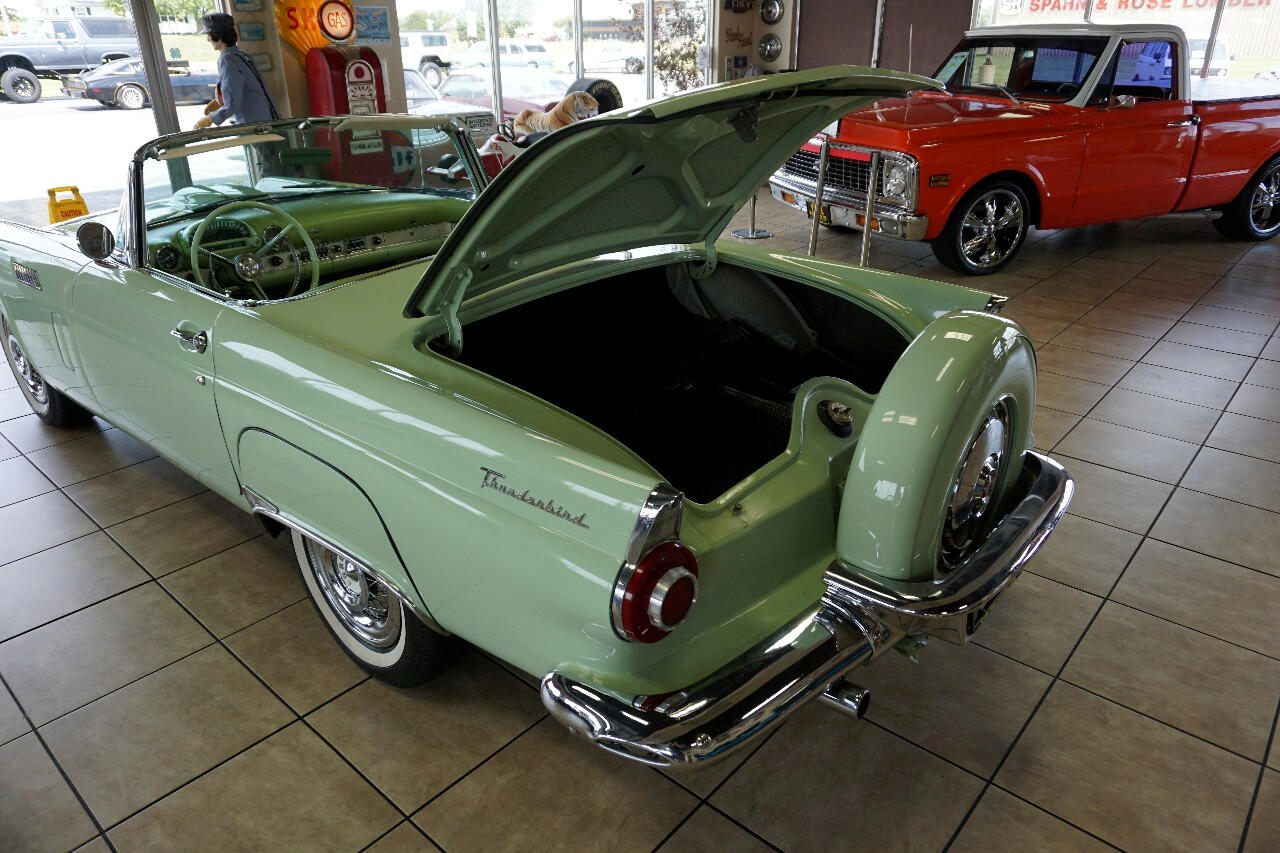 Check out this rolling piece of art — a stunning 1956 Ford Thunderbird, finished in eye-catching Sage Green with a crisp White Removable Hardtop.