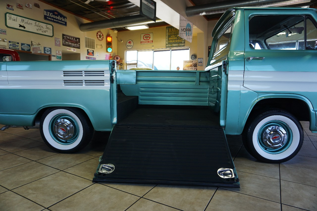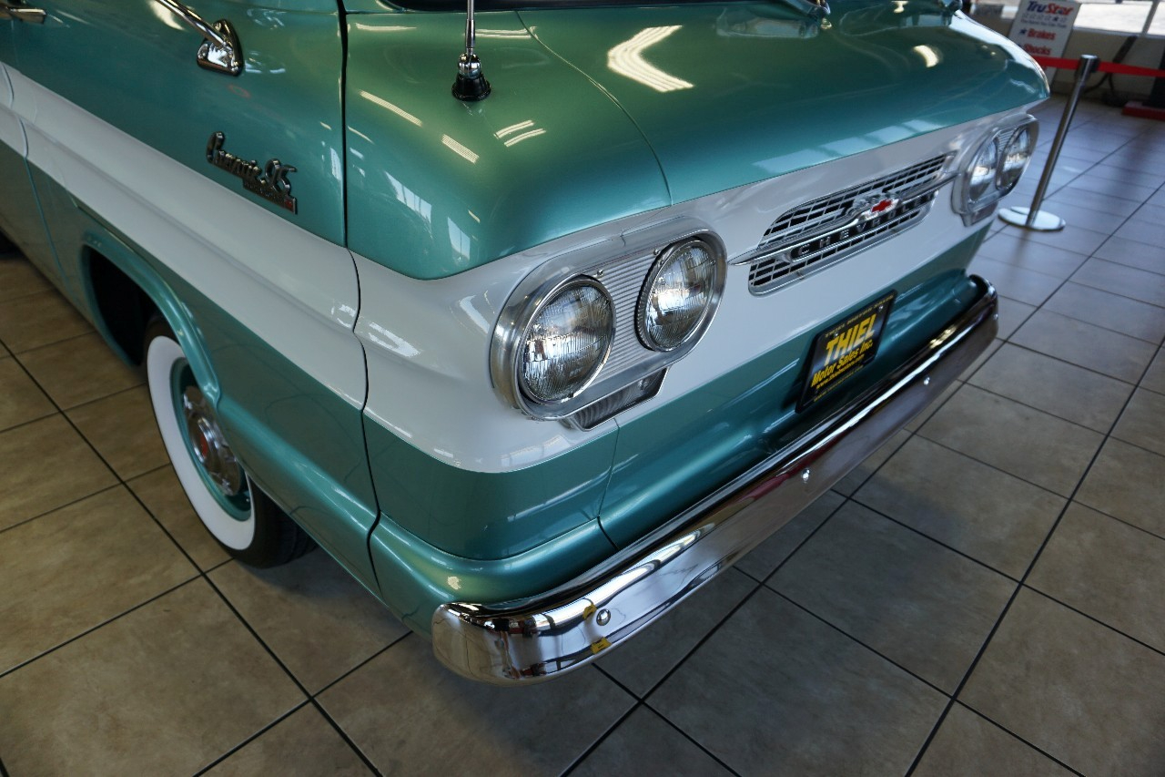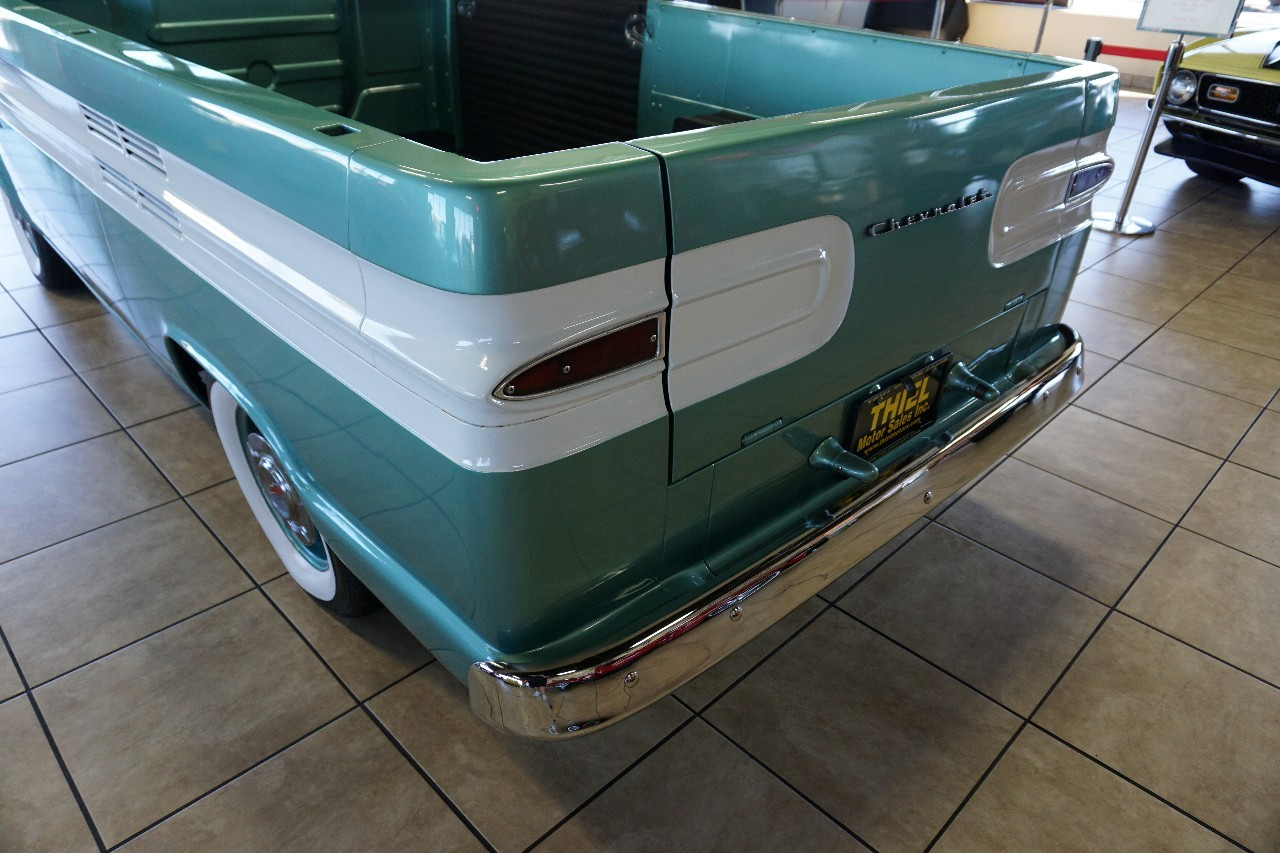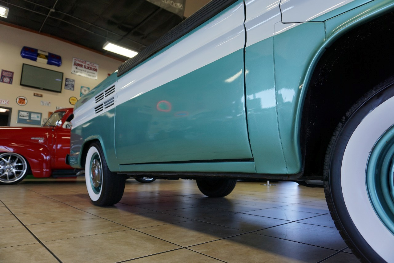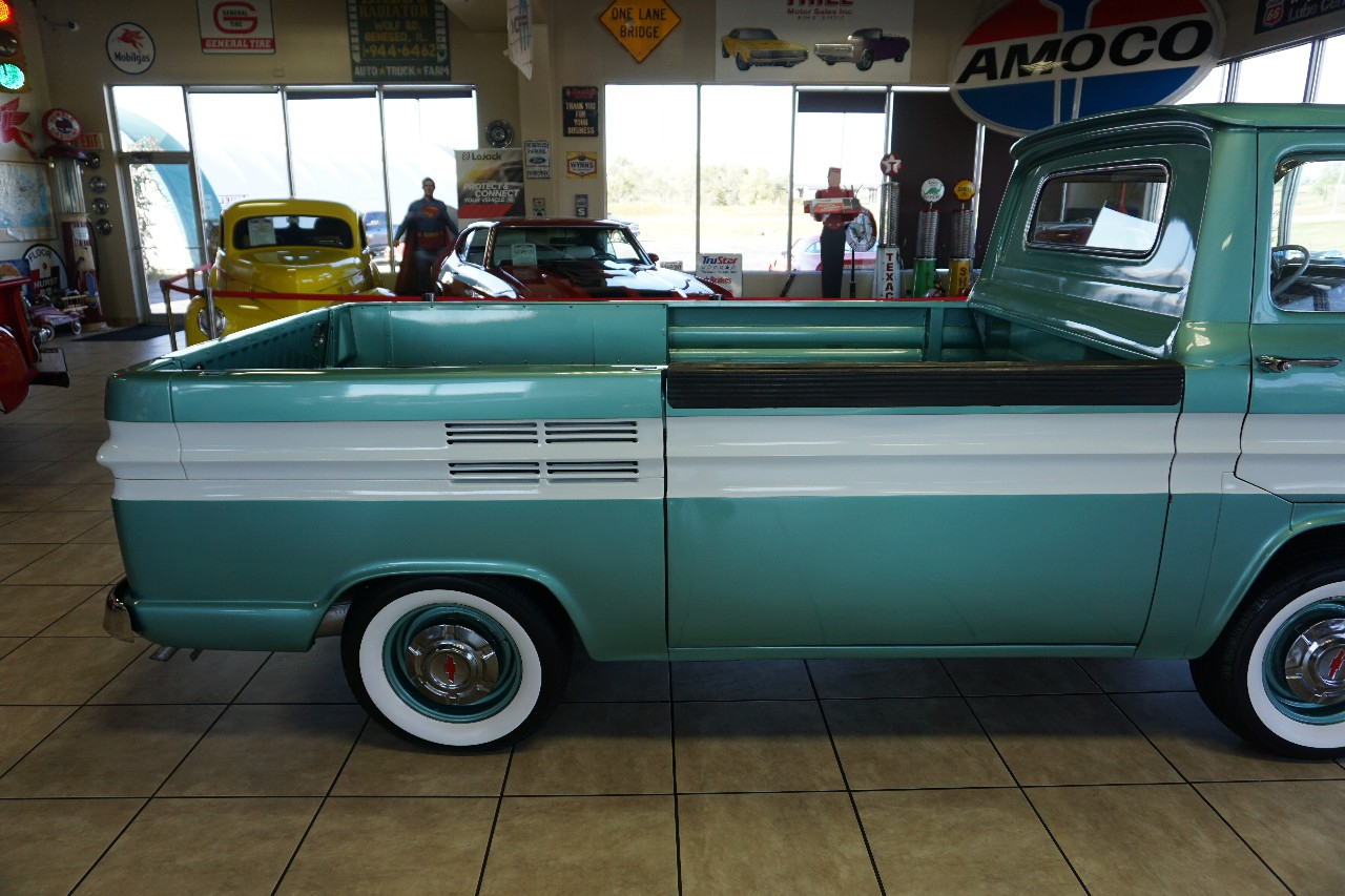 JUST IN — and talk about RARE! This 1961 Chevrolet Corvair 95 Rampside Pickup is a true piece of Chevrolet history — the first year ever built! Finished in a stunning Light Mint Metallic & White two-tone, it sports color-matched steel wheels, dog dish hubcaps, and wide whitewall tires for that perfect period-correct look. Under the rear deck sits the legendary Flat 6-Cylinder Engine paired with a rare 4-speed manual transmission. FULLY RESTORED in 2016, this Rampside is ready to serve as a fun weekend driver, eye-catching showpiece, or rolling billboard for your business. Whether it’s in a parade, at a car show, or parked outside the hardware store, this truck is guaranteed to grab attention everywhere it goes.